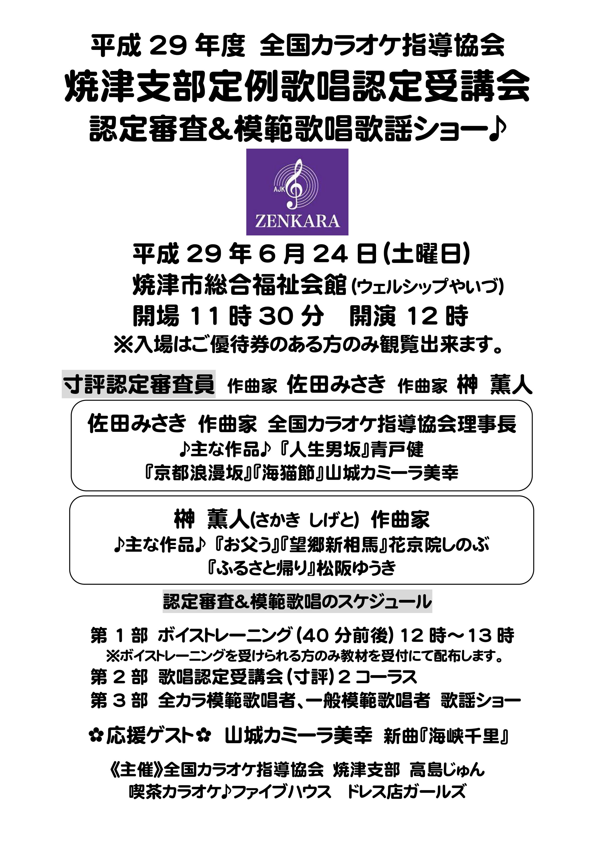 焼津支部定例歌唱認定受講会 応援チケットも残りわずかです。