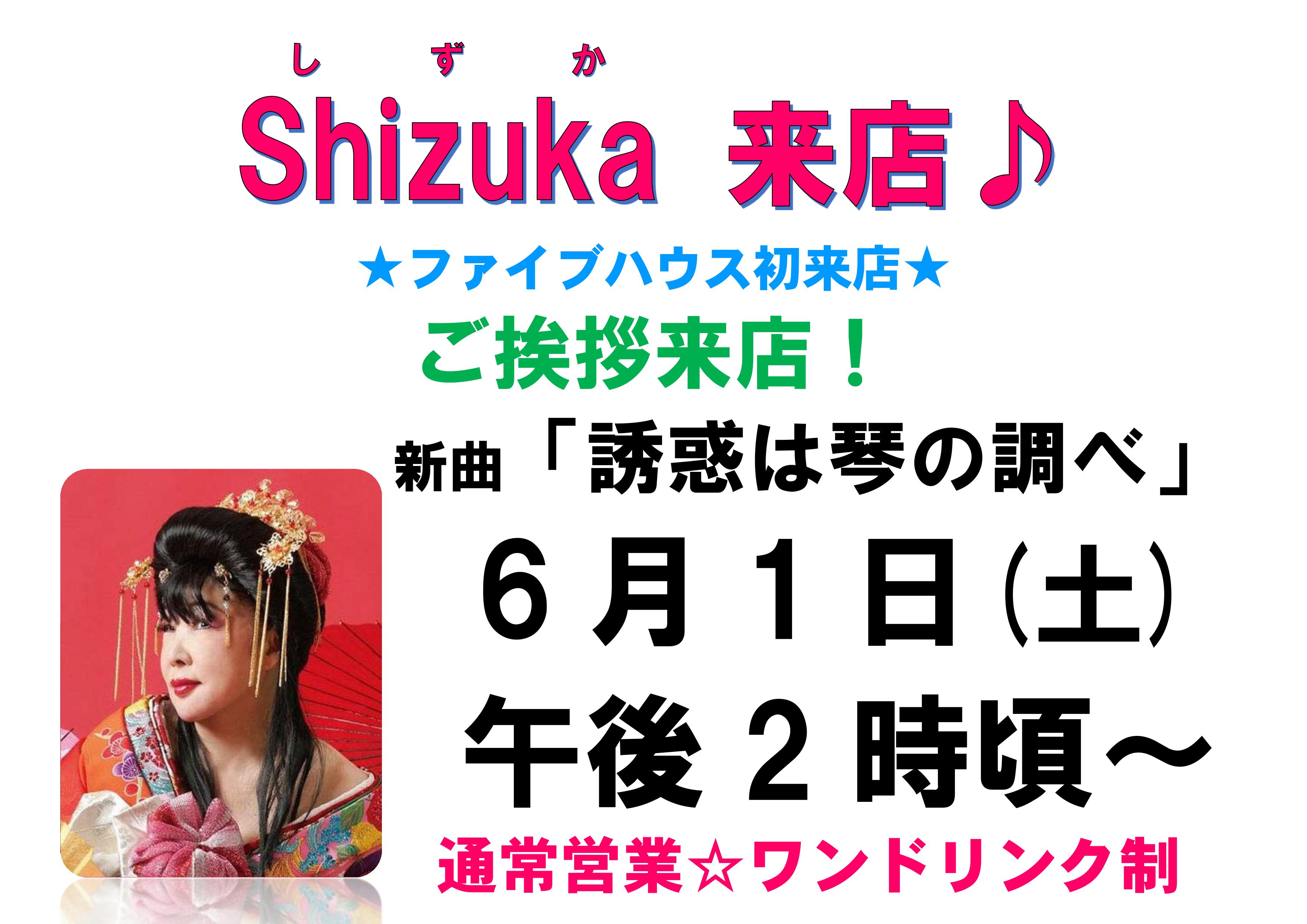 焼津市カラオケ喫茶ファイブハウス6月歌手イベント♪緊急告知♪Shizuka挨拶来店6月1日(土)決定♪