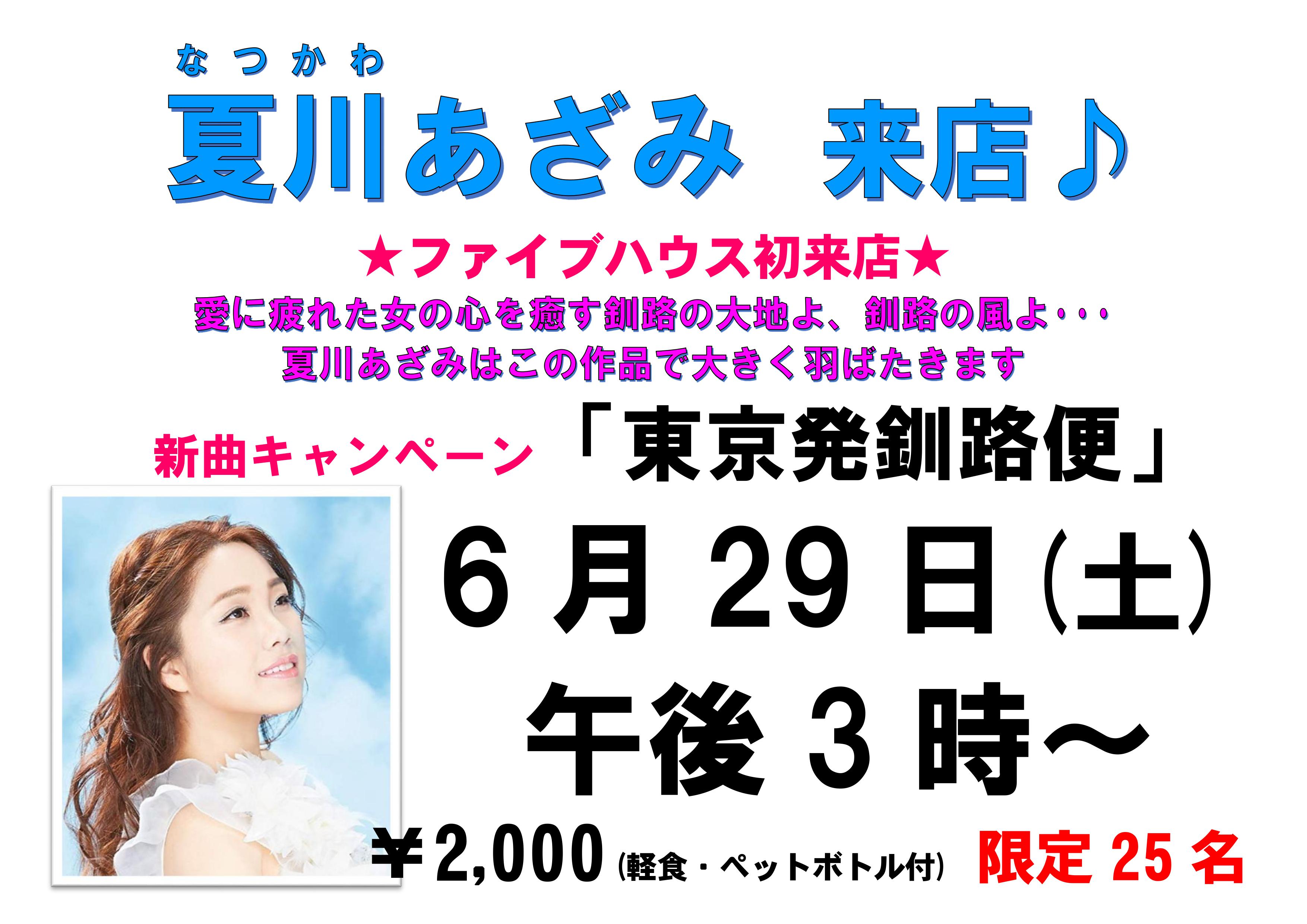 焼津市カラオケ喫茶ファイブハウス6月歌手イベント♪夏川あざみ新曲キャンペーン6月29日(土)決定♪