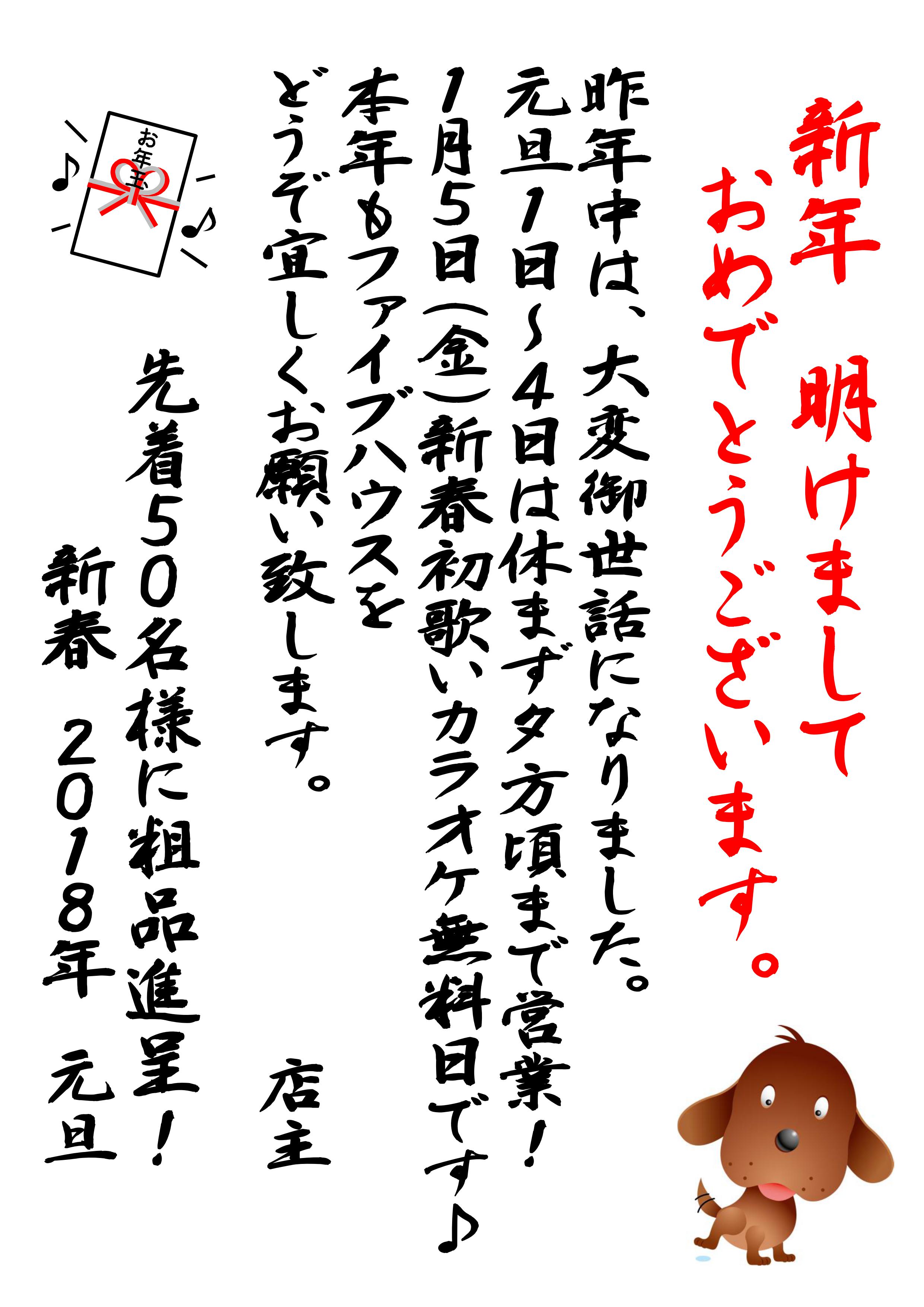 ドレス店ガールズとカラオケ喫茶ファイブハウスの2018年新年のご挨拶